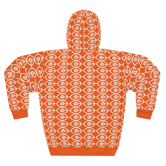 All-Over-CyVision Eye Pattern Hoodie — Orange Spiritual Graphic Pullover